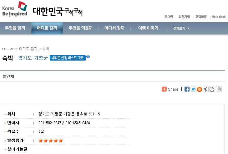 경기도 관광공사에서 선정한....네티즌베스트 그곳..에 선정되었네요.. 페이지 정보 작성자 뜰안채 작성일12-10-03 21:44 조회11,724회 댓글0건 본문 너무 감사합니다.. 댓글목록 등록된 댓글이 없습니다. 이전글 다음글 목록