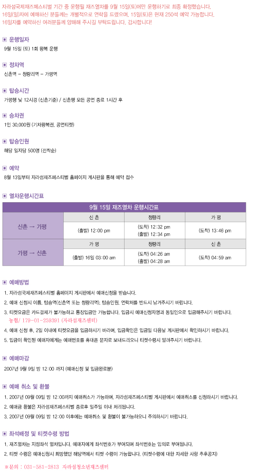 재즈열차를 이용하실 분들의 많은 기대 부탁드립니다! ^^