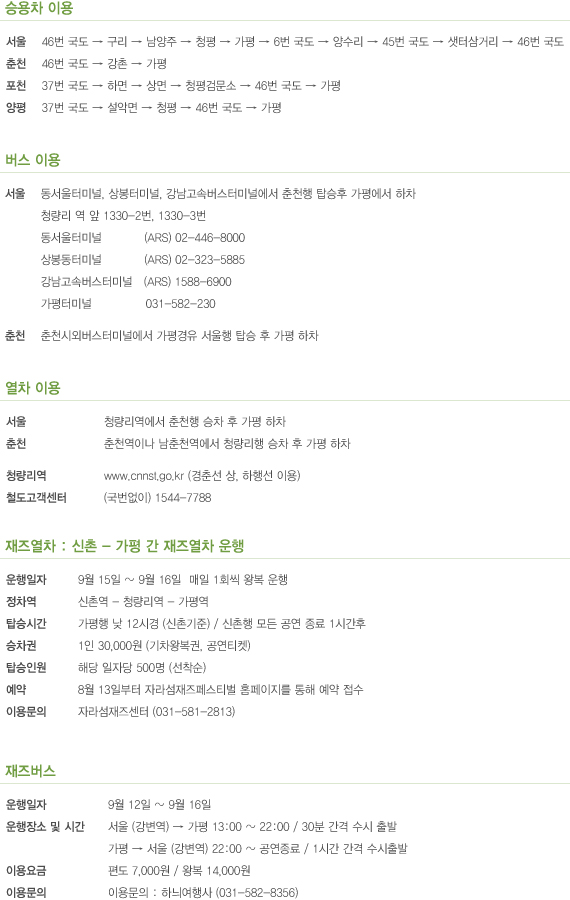 자라섬 재즈페스티발 교통관련