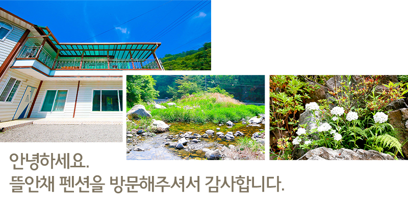 청정지역인 가평에 남이섬과 자라섬이 가깝고 맑은 물인 용추계곡내에 위치한 뜰안채 펜션은 여름에는 아름다운 꽃들과 함께 하고 겨울에는 한아름 눈꽃들과 함께 합니다. 찾아 오시는 손님들에게 낯선곳이 아닌 고향집 같은 편안하고 그리운 곳이 되도록 하겠습니다.
